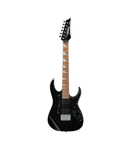 يُعد جيتار إيبانيز جي آر جي إم ٢١ - بي كيه إن (باللون الأسود الليلي) نسخة "ميكرو" المصغرة من فئة آر جي الشهيرة؛ حيث صُمم بطول سلم صوتي أقصر خصيصاً ليناسب العازفين الصغار، أو محبي السفر والتنقل، أو أولئك الذين يفضلون آلة تتناسب مع حجم اليد الصغير.