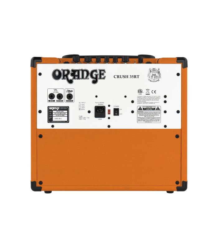 مضخم صوت غيتار مدمج أورانج – كراش ٣٥ آر تي ثنائي القناة، من الحالة الصلبة، بقوة ٣٥ واط، ويضم سماعة مقاس ١ × ١٠ بوصة مع مخرج سماعات رأس كاب سيم ، وصدى صوت رقمي، وموالف