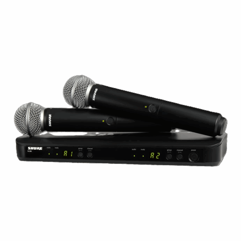 • يجمع نظام صوتي غنائي لاسلكي مزدوج شور بي إل إكس٢٨٨/إس إم ٥٨ بين جودة الصوت الاحترافية والإعداد البسيط، ويوفر عمر بطارية يصل إلى ١٤ ساعة للحصول على أداء صوتي أسطوري لمغنيين اثنين فور إخراجه من الصندوق.يشتمل النظام على: جهاز استقبال ثنائي القناة بي إل إكس٨٨  يوضع على الطاولة، ٢ جهازي إرسال محمولين باليد إس إم ٥٨  الأسطوريين، ٢ مشبك ميكروفون، مزود طاقة، مجموعتين من بطاريات إيه إيه، ودليل المستخدم.
