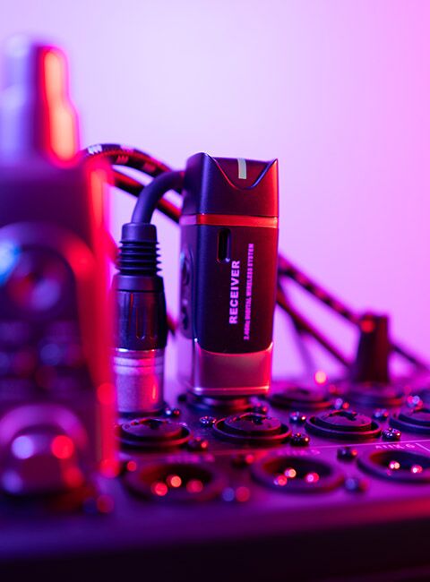 • تجاوز الخلاط: إذا كنت بحاجة إلى مخاطبة الجمهور عبر مكبرات صوت تعمل بالطاقة، فلن تحتاج فقط إلى الاستغناء عن الكابل، بل يمكنك الاستغناء عن الخلاط أيضًا! ما عليك سوى توصيل جهاز استقبال يو٣٥ مباشرةً بمدخل إكس إل آر الخاص بمكبر الصوت.