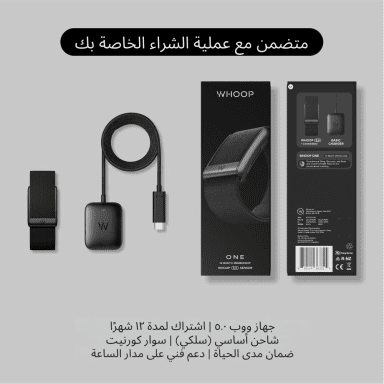 • تتضمن عملية شراء ووب الخاصة بك عضوية ووب ون لمدة ١٢ شهرًا، وجهاز ووب ٥.٠، وسوار كور نت، وشاحن أساسي سلكي.
