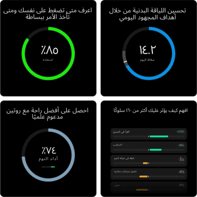 • احصل على توصيات يومية للنوم والإجهاد والتعافي لتحسين أدائك إلى أقصى حد، بالإضافة إلى استجابات مدعومة بالذكاء الاصطناعي لأسئلتك المتعلقة بالصحة واللياقة البدنية.