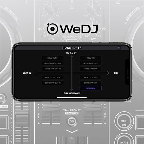 • Connect your smartphone, tablet, or PC/Mac to start mixing. A number of software programs and apps – including WeDJ for iPhoneWeDJ for Androiddjayedjing Mix and rekordbox – are compatible with selected devices. You’ll also have free use of all the features in WeDJ for iPhone that normally require in-app payments.