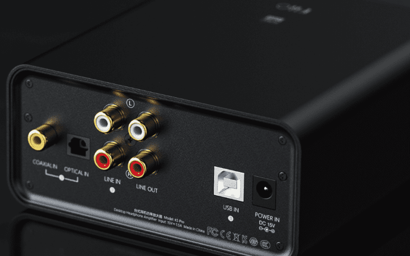 • Besides the wide variety of digital inputs, the K5 Pro also features a traditional analog RCA line-in. RCA line-in is not  only more robust and less prone to breakage than 3.5mm line-in, it also has better resolution. The RCA line-out line signal is adjustable up to a maximum of 2Vrms, so the K5  Pro can be used with a variety of active speakers and external amplifiers.