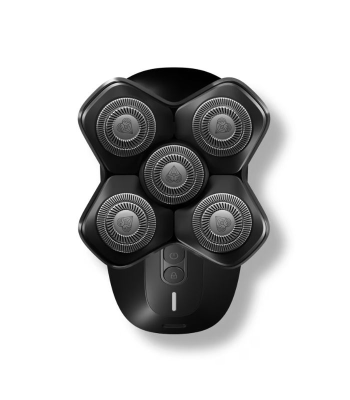 • Five stainless-steel SkinSafe® blade heads float over bumps and curves for a smooth shave. With FlexAdjust technology, each blade stays in close contact with the scalp.