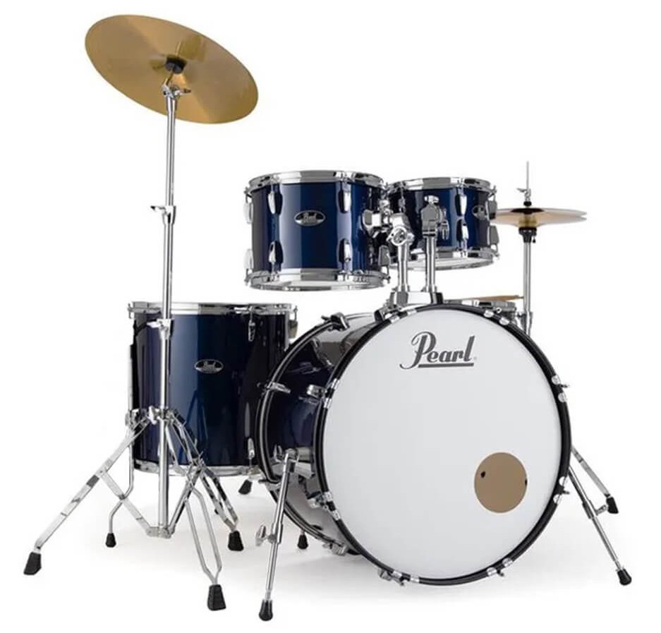 • The Pearl Roadshow makes a solid foundation for the budding drummer and a mighty club kit for the weekend warrior. It's a great-sounding set of drums on its own — its 9-ply poplar shells with modern 45-degree bearing edges deliver a modern, lively attack that's inspiring behind the kit and easy to capture with a mic. This complete 5-piece kit includes drums, cymbals, hardware — even sticks and a stick bag — so players can get up and drumming right away.