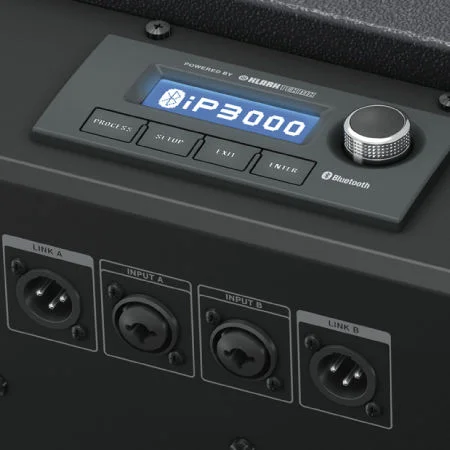 • The Turbosound iP3000 features a fully-addressable digital three-channel mixer, with two combo XLR/TRS connectors for dynamic mics or line-level instruments. The mixer's user interface consists of one rotary push-encoder with Process, Setup, Exit, and Enter buttons for navigating the clear, backlit LCD menu display. Through the display and function buttons, you get quick, efficient access to the outstanding Klark Teknik DSP, with input EQ, Reverb, three-band output EQ, and convenient presets.