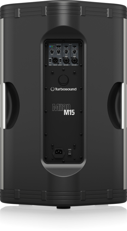 The 1,100-Watt full range MILAN M15 is a portable 15″ two-way powered loudspeaker featuring: two independent input channels with Mic and Line Inputs, selectable via a Mic/Line switch; a two-band master EQ (Bass, Treble); intelligent Limiting; and a Mix Out function for connecting additional powered loudspeakers for easy system expansion.