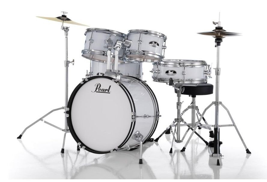 Pearl Roadshow Junior 5-Pcs Drum Set with Hardware & Cymbals Pure White Finish