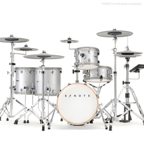 • The EFNOTE 5 Standard (White Sparkle) is a boutique-level electronic drum kit designed for drummers who want the visual presence and physical response of an acoustic kit without the volume. It stands out for its birch 6-ply shells and advanced multi-sensor technology that eliminates "hot spots."