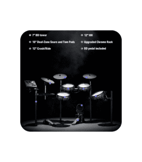 • 8'' Snare x1, 8'' Tom x3, 10'' Hi-hat x1, 10'' Crash x1, 10'' Ride x1, Kick x1, Hi-hat Control x1, Kick Pedal x1, DM-210 Module x1