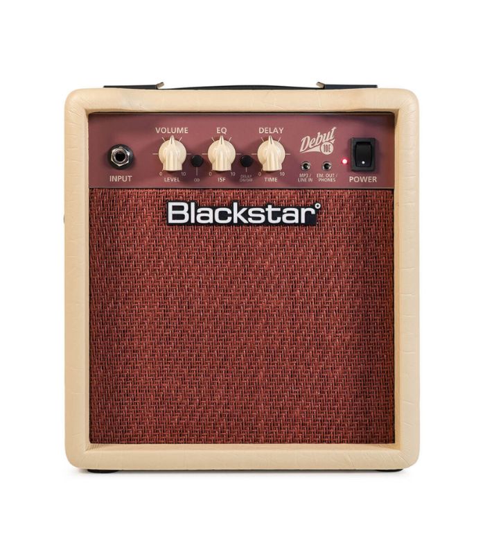 • The Blackstar Debut 10E is a 10W stereo guitar amplifier suitable for both beginners and experienced players. Its classic design adds elegance to any setting. With two channels and an overdrive switch, it offers a range of tones controlled by the ISF feature. It includes a simulated tape delay and a 3.5mm MP3/line input for playing along with tracks. The headphone jack allows for silent practice or direct recording. Additionally, it serves as a portable stereo speaker for music and entertainment. Designed by Blackstar’s UK team, it delivers rich, natural tones with dynamic response, making it an ideal choice for home practice or recording sessions.