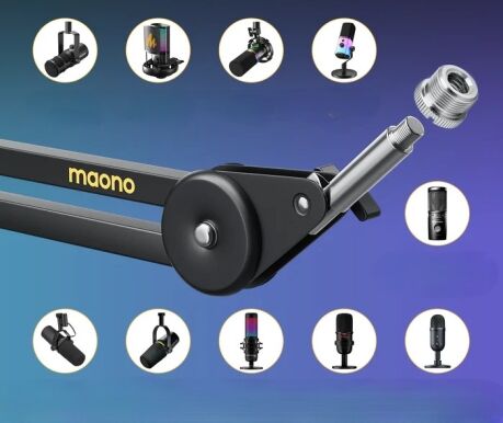 • MAONO BA37 microphone arm stand features a 5/8" to 3/8" screw adapter,compatible with many brands of microphones and shock mount on the market.Including MAONO PD100X, PD200X, PM450, PD400, PM500, Fifine AM8, AmpliGame(A6V, A8), AM8, HyperX QuadCast, HyperX Solocast, Blue Snowball, Shure MV7, Shure SM58, Shure SM7B, AT2020, AT2035,etc. MAONO BA37 microphone boom arm is very friendly to studio, recording, podcasting, gaming.