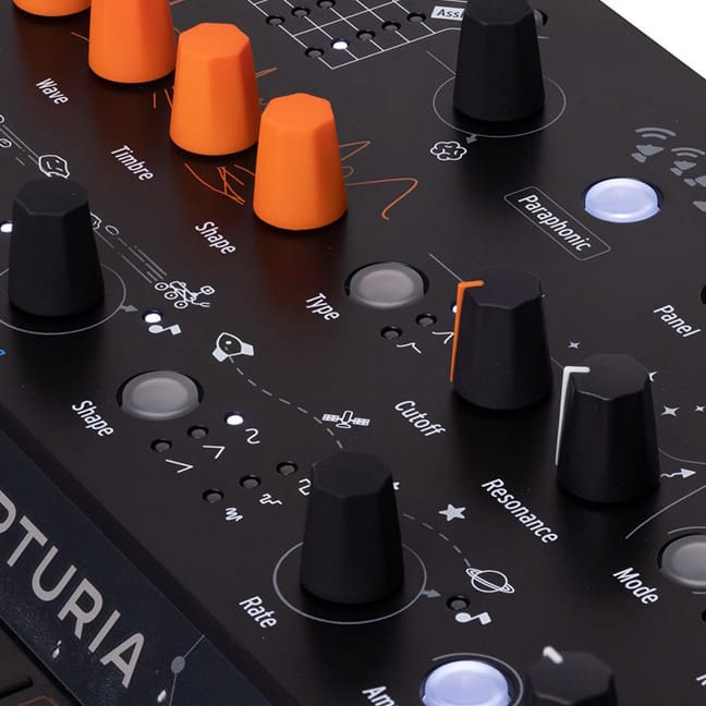 • Discover a synth that looks as weird and wonderful as it sounds with a slick all-black exterior, decorated with detailed space-age graphics reflecting its controls.