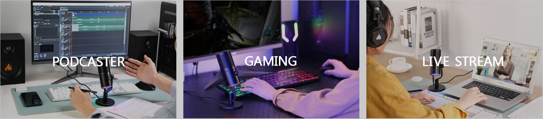 Back in 2014, Alex, the founder of Maono, was working in Africa and happened to have the chance to learn the culture of Africa, he was impressed by the richness of the African continent, and the diversity of culture, and also feel the YOUG, MUSICAL, NATURAL of people while they are dancing barefoot around the bonfire. He starts to think about the way to obtain happiness and the future of next-generation and how we can start building a brand that represents happiness for our children? One day Alex asks the local people in Africa how to say "VISION" in their own language, Here comes"Maono"【ˈmɑnoʊ】. this is the original intention of MAONO, a company created for the future. stands for vision believes vision drives technology, and focuses on professional audio products innovation, especially for the fast-growing young generations who like to podcast themselves and share their moments on the internet. Over the past 6 years, Alex and the engineers have been studying audio expertise and technology, with firmly reserved the powerful audio technology R&D strength, Believing in vision-driven technology, Maono has evolved from the first clip-on microphone to USB/XLR dual-mode microphone equipped with Maono-link software. The product team is moving forward with user driven development and design, extending the microphone to an integrated audio ecosystem that includes maonocaster audio interface( leading"Podcast Equipment Bundle) searches for hot words) and monitoriing headphone/speakers.