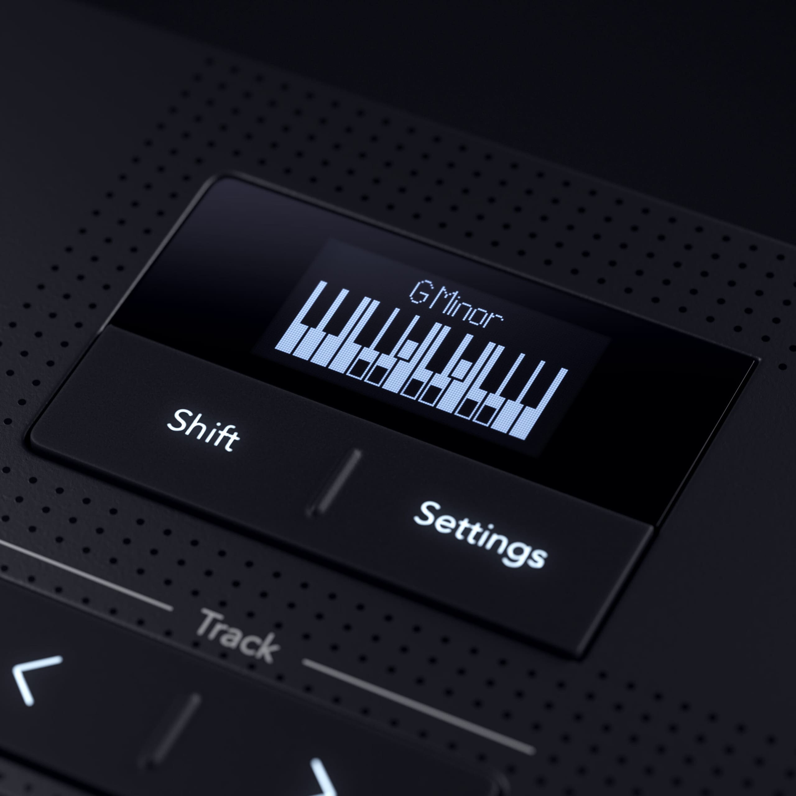 • Chord Detector shows which chord is currently being played, with a visual representation on the crisp OLED display.