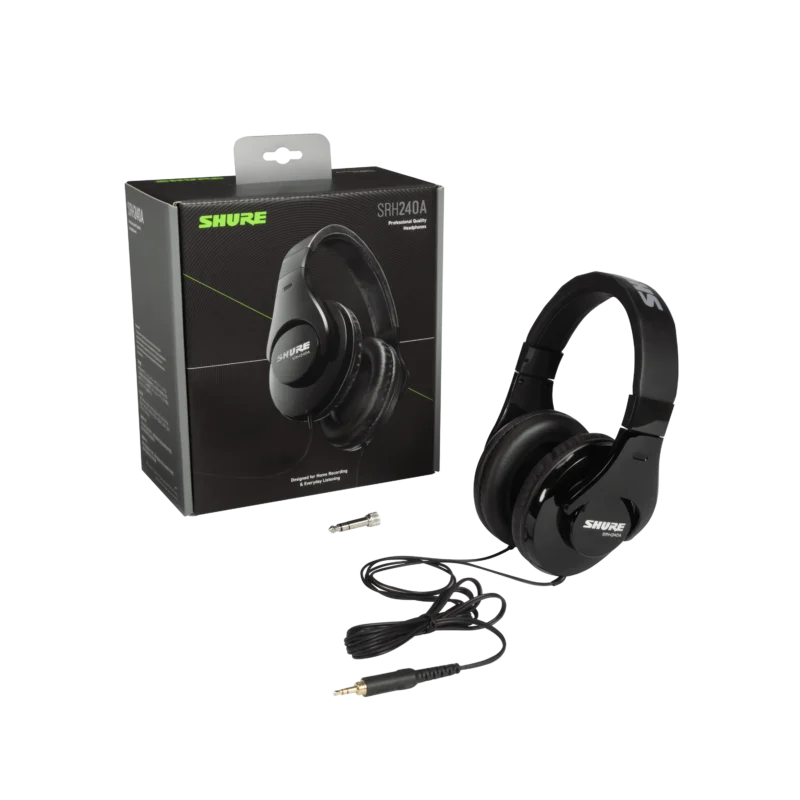 • The SRH240A Headphones provide excellent sound reproduction and comfort for home recording and everyday listening. With 40 mm neodymium dynamic drivers, the SRH240A Headphones deliver full bass and detailed highs. Impedance, power handling and sensitivity are all calibrated for consumer and professional audio devices. Includes threaded 1/4" (6.3 mm) nickel-plated adapter.