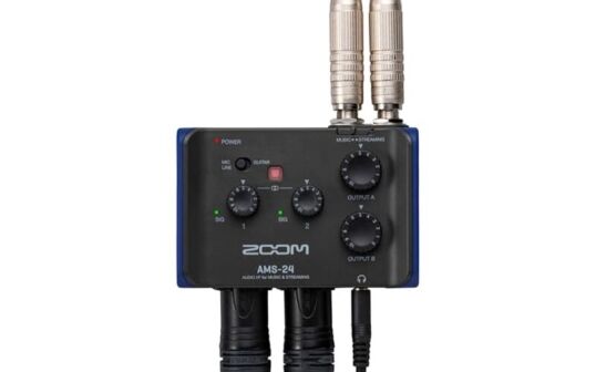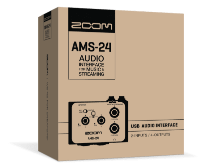 • The AMS-24 is perfect for solo streams and multi-instrument sessions. It features two XLR/TRS combo inputs along with Zoom’s low-noise preamps. Also included are two headphone outputs and two TRS outputs for external monitors.