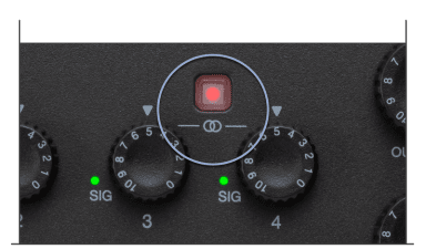 • Links two inputs for stereo recording or streaming, and allows you to control both inputs with one gain knob.