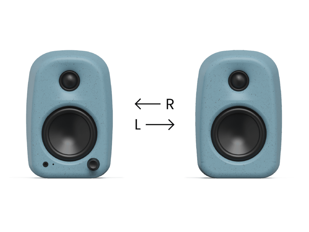 • Uki keeps control intuitive and within reach. A quick switch flips speaker orientation so volume and headphone access are always close at hand, while the front-mounted dial lets you adjust volume, change inputs, and power on or off — all in one smooth motion.