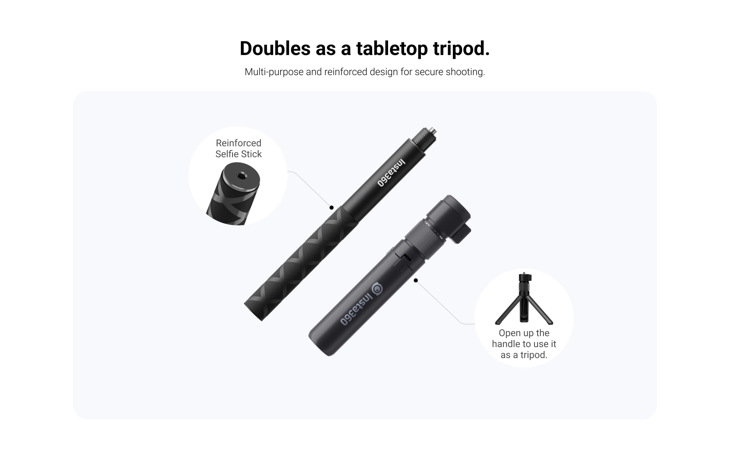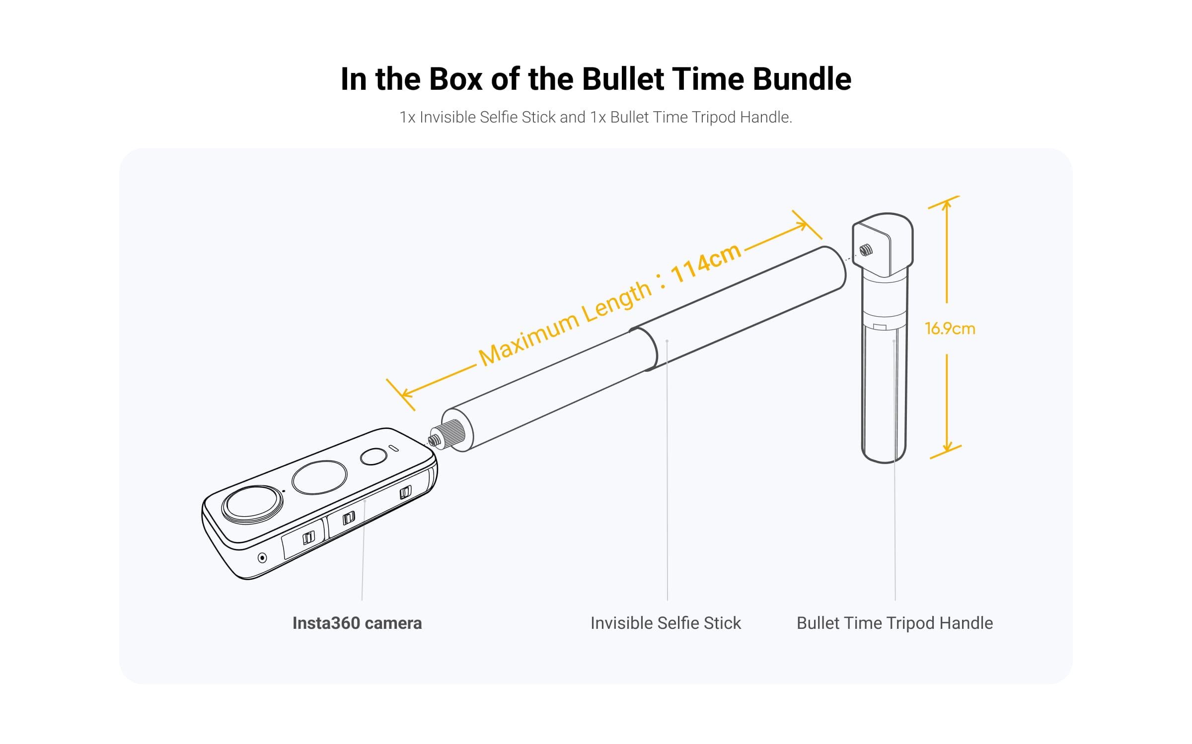 • Bundle includes 1x Bullet-Time Tripod Handle and 1x Selfie Stick.