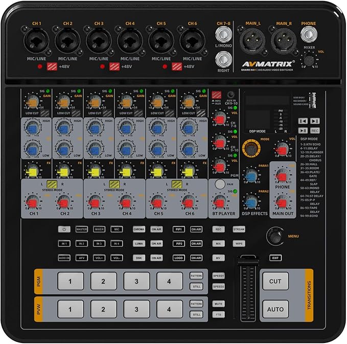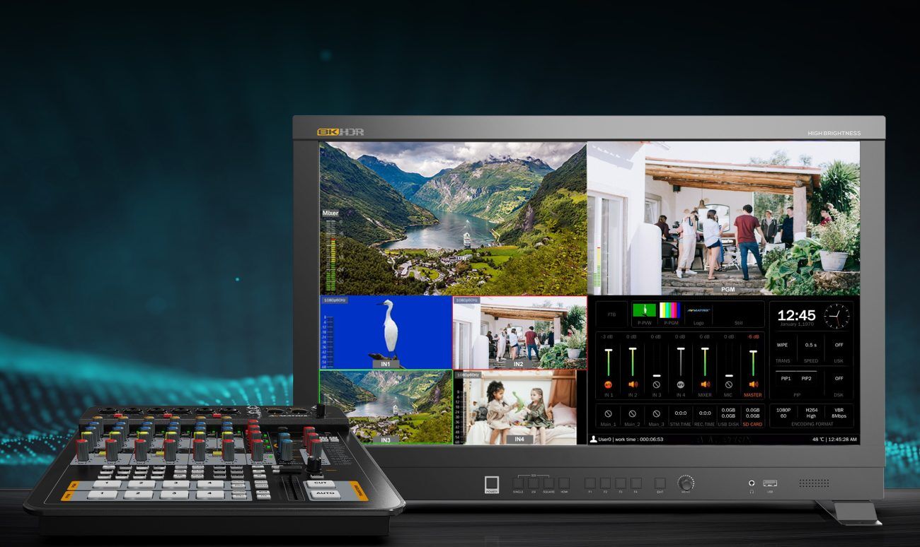 • The SHARK H4M is a professional video switcher and audio mixer, designed to meet the demands of fast-paced and complex production needs. The SHARK H4M can switch signal sources in real-time while live streaming, supporting a variety of transition effects, chroma key, DSK, USB/SD card recording, USB Type-C capture, RTMP/SRT streaming, and more. In terms of audio processing, each input channel features high-quality preamp gain, 2 band EQ, low-cut filter, stereo audio switching, digital effect processor and volume adjustment. This all-in-one device seamlessly integrates the functions of a professional video switcher and an audio mixer, making it an ideal tool for live streaming and content creation.