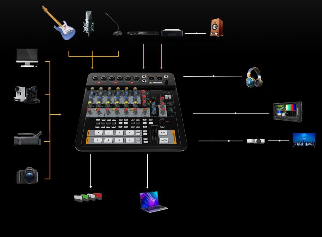 • This versatile audio & video switcher is equipped with four auto-detected video inputs, independant and configurable PGM and multiview outputs, supporting up to 1080P 60 FHD resolution. Its flexibility ensures integration with diverse devices, making it ideal for a wide range of applications.